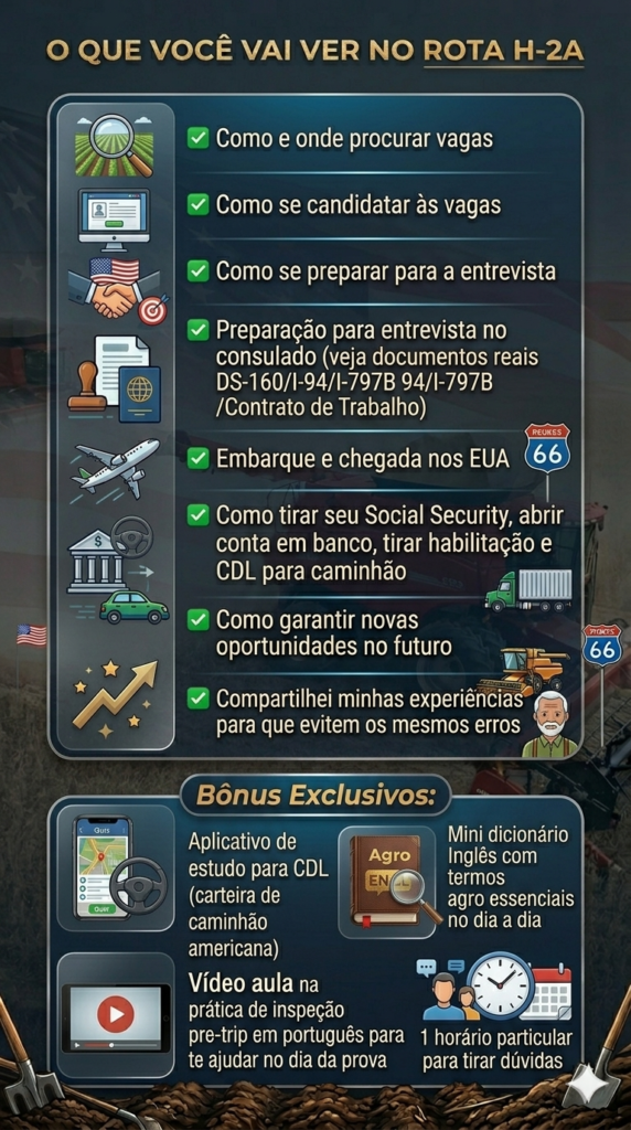 Aprenda na prática o passo a passo de como você pode viver o sonho americano ganhando mais de R$ 10.000 reais por mês e com seu empregador pagando sua passagem ida-e-volta, moradia e transporte.